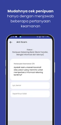 Memperkenalkan Anti Scam, solusi unggul yang direka khas untuk memberikan anda ketenangan fikiran dalam setiap interaksi dalam talian. Aplikasi pintar ini bertindak sebagai perisai digital peribadi anda, dilengkapi dengan fitur canggih untuk mengesan dan mengenal pasti pelbagai jenis penipuan yang sering muncul. Sama ada anda sedang menelusuri tawaran menarik di pasaran dalam talian, berbual dengan kenalan di media sosial, atau menggunakan platform digital lain, Anti Scam bersedia untuk melindungi anda daripada ancaman yang tidak diingini. Ia dirancang untuk memahami corak penipuan terkini, memastikan anda sentiasa selangkah di hadapan penipu.