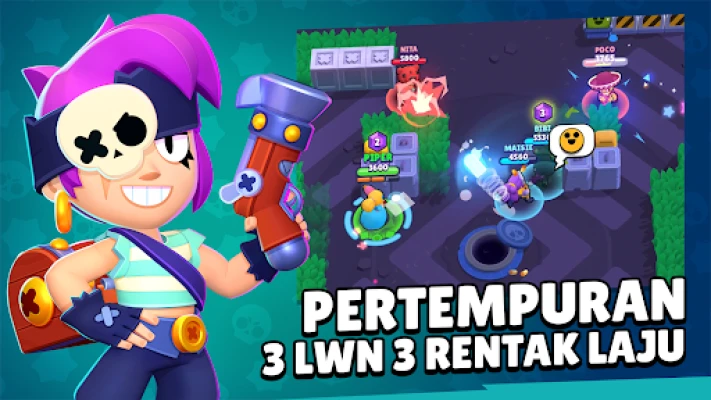 Selami dunia tempur yang dinamik dan penuh aksi bersama Brawl Stars, arena pertarungan pantas ciptaan Supercell! Bersedia untuk mengumpul dan menguasai koleksi Brawler yang sentiasa berkembang, setiap satunya dengan personaliti tersendiri, keupayaan super unik, Kuasa Bintang yang memukau, serta Gadget yang mengubah permainan. Transformasi penampilan pejuang kegemaran anda dengan pelbagai set kulit eksklusif yang menarik, memastikan anda tampil menonjol di setiap medan pertempuran. Sama ada di padang pasir berdebu atau lembah misteri, setiap lokasi menjanjikan cabaran dan strategi yang berbeza.