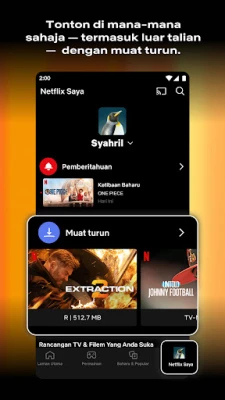 Netflix sentiasa menyegarkan perpustakaan kandungannya, memastikan anda tidak akan kehabisan tontonan. Terokai keluaran terkini yang mendebarkan atau kunjungi semula kegemaran abadi anda dengan mudah, semuanya boleh distrim secara terus melalui peranti anda. Apa yang lebih menarik, teknologi pengesyoran pintar Netflix belajar daripada setiap tontonan anda, memberikan cadangan peribadi untuk rancangan TV dan filem yang benar-benar selaras dengan cita rasa unik anda.