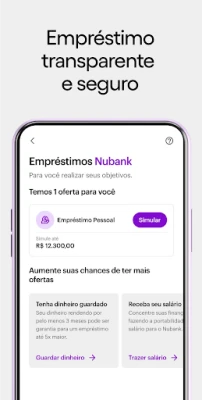 Nubank, syarikat teknologi kewangan terkemuka di Amerika Latin, membawa revolusi kepada cara anda mengurus wang. Kami percaya bahawa kehidupan kewangan anda seharusnya bebas daripada kerumitan, telus sepenuhnya, dan mudah difahami. Dengan Nubank, tiada lagi cetakan kecil yang mengelirukan, helah tersembunyi atau yuran yang tidak munasabah. Sebaliknya, setiap keputusan kewangan berada dalam kawalan penuh anda, membolehkan anda menikmati kebebasan dan kejelasan yang selayaknya.