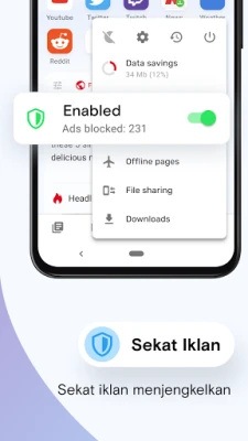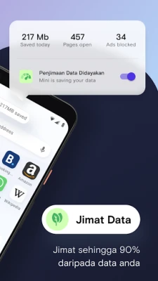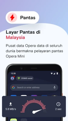 Dengan mod penjimatan data pintar, Opera Mini membolehkan anda menikmati lebih banyak kandungan dengan kurang data, memberikan kecekapan sehingga 90%. Pengurus muat turun bersepadu mencari dan mengurus fail video dan audio secara automatik, membolehkan anda mengaksesnya dengan mudah tanpa perlu bersusah payah mencari folder. Berkongsi fail menjadi lebih mudah dengan ciri perkongsian luar talian; pindahkan gambar atau dokumen pada kelajuan tinggi tanpa memerlukan internet atau menggunakan data, cukup dengan mengimbas kod QR antara pengguna Opera Mini yang lain.