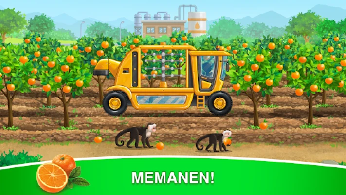 Pengalaman bertani digital ini membawa anak-anak melalui kitaran penuh pengeluaran oren, dari tanah hingga ke pasaran. Setiap langkah adalah peluang pembelajaran baharu. Anak-anak akan terlibat dalam pelbagai aktiviti, bermula dari merakit kenderaan ladang, mencuci, mengisi bahan api, dan bahkan membaikinya di bengkel jika diperlukan. Mereka akan mengendalikan mesin-mesin besar seperti penabur benih dan penyembur, menggunakan penyiram untuk membasahi tanaman, dan memandu traktor serta penuai gergasi. Puncaknya adalah apabila mereka menuai seluruh hasil oren dan menghantarnya ke mesin pembuat jus untuk menghasilkan produk akhir yang sedia untuk dijual. Setiap peringkat dalam aplikasi edukasi ini memperkenalkan trak atau kereta baharu, mendedahkan anak-anak kepada fasa-fasa berbeza dalam mengurus kebun oren mereka sendiri.