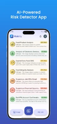 Lindungi diri anda daripada penipuan digital dan risiko pengguna dengan Risklity. Penjaga berkuasa AI ini menganalisis teks, pautan, dan label makanan untuk mengesan ancaman, memastikan keselamatan anda sentiasa terpelihara.