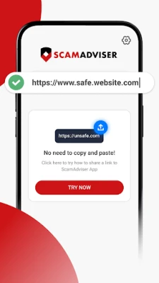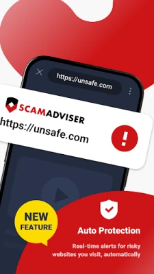 ScamAdviser membawakan perlindungan menyeluruh melalui ciri-ciri canggih. Dapatkan Perlindungan VPN Web baharu yang menyemak laman web yang anda lawati dan domain yang disambungkan kepada aplikasi pada telefon anda secara automatik. Terima pemberitahuan tolak masa nyata sebaik sahaja laman web berisiko dikesan, memberikan anda amaran awal yang penting. Selain itu, dengan Penyemak Laman Web & URL Segera, anda hanya perlu menampal mana-mana pautan untuk membongkar kesahihannya. Kami akan mendedahkan jika ia mengandungi perisian hasad, cubaan pancingan data, atau merupakan skim penipuan dalam talian.
