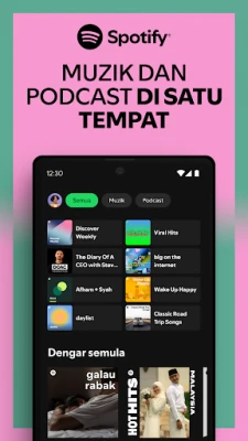 Spotify menawarkan pengalaman terbaik untuk menikmati muzik kegemaran anda dan pelbagai podcast menarik. Dengarkannya bila-bila masa, di mana sahaja, terus dari telefon bimbit atau tablet anda dengan mudah. Temui dunia hiburan audio yang luas.