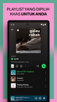 Selami dunia hiburan audio yang tiada tandingannya dengan Spotify, platform utama anda untuk menjelajahi berjuta-juta lagu, artis dan album. Bina koleksi muzik peribadi anda yang mengagumkan dan susun senarai main impian yang boleh dikongsi bersama teman-teman. Dengan cadangan yang disesuaikan khas untuk citarasa unik anda serta senarai main sedia ada untuk setiap suasana atau aktiviti, inspirasi muzik tidak pernah berakhir. Spotify sentiasa memastikan anda sentiasa berhubung dengan irama yang anda gemari.